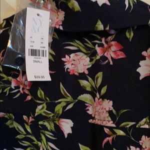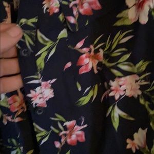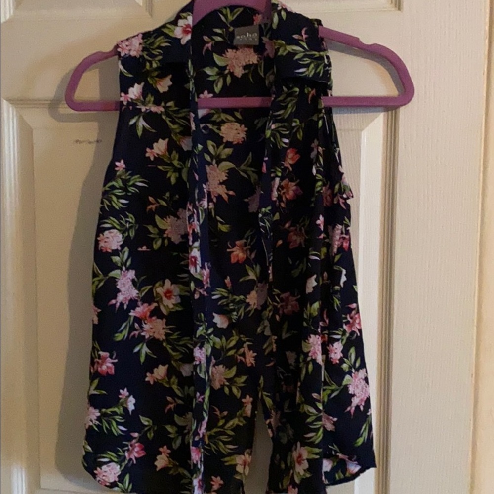 Cute navy blue and floral button up sleeveless top. Looks super cute tied up with shorts!
