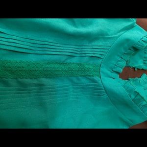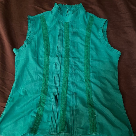 Kelly green sleeveless top with lace embellishment
