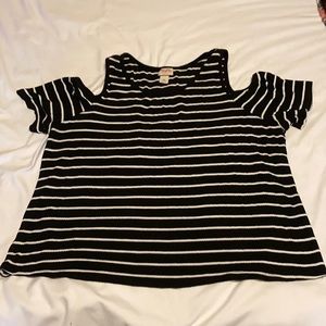 This shirt is a ribbed material that has short sleeves with a shoulder cut-out. This shirt is a size XXL.