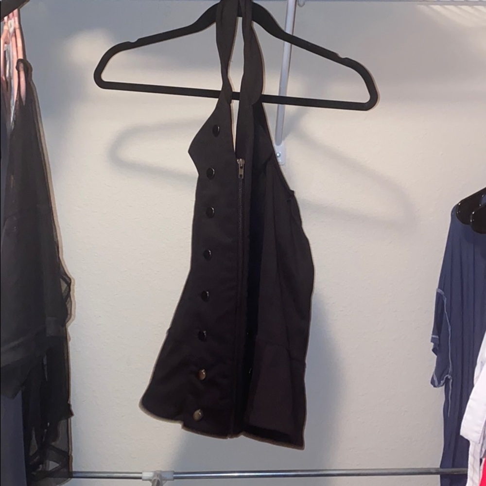 black zip up corset tank top