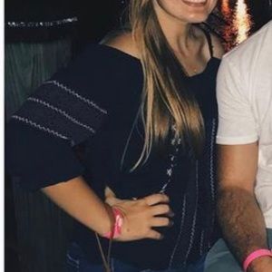American Eagle off the shoulder (w/straps) top Best to be worn in spring :) Few stitches loose on print