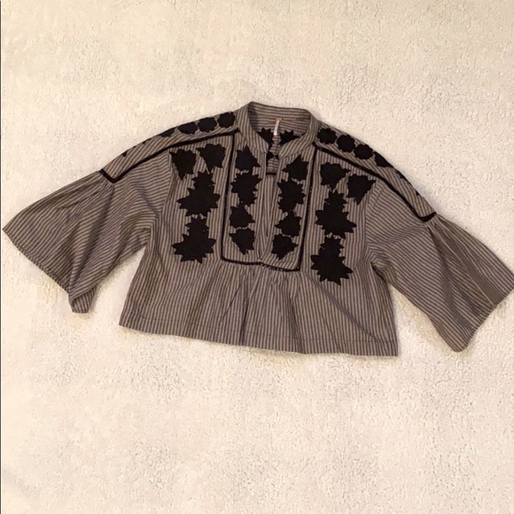 Free People crop top (sits at waist) deep neck, relaxed sleeves-never worn