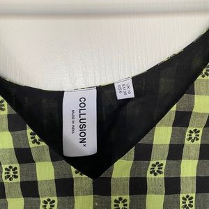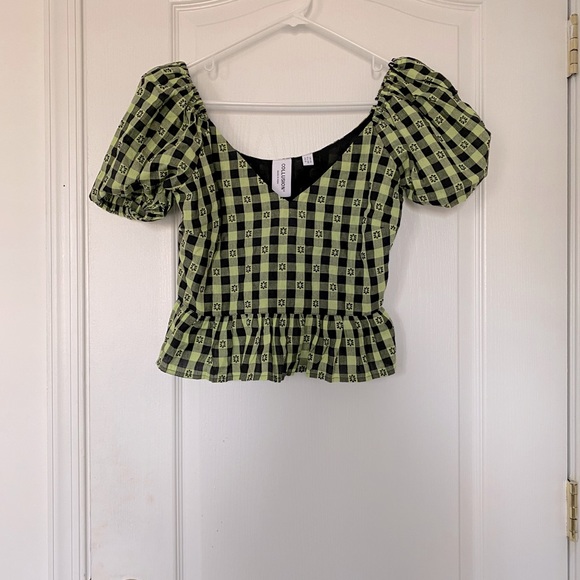 Super cute collusion top, team this with high waisted mom jeans and you are set.