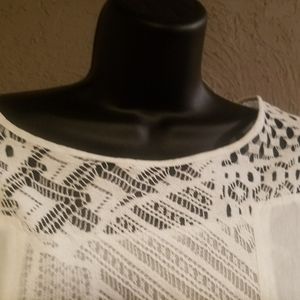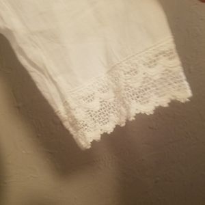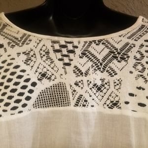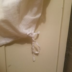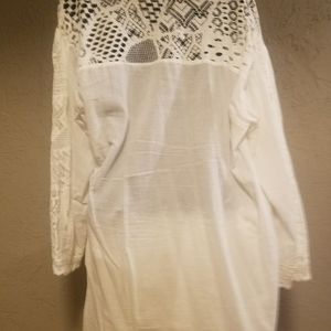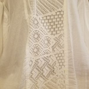 This is a sweet white tunic with tie on the side as seen in picture. It is made of 100% cotton with lacey inserts