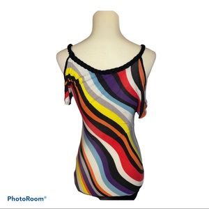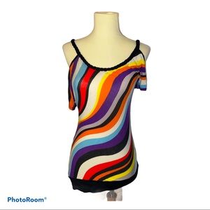 Great condition, Kiwi lightly worn slight Asymmetrical top, great colors, braided collar. 💖 Size: small