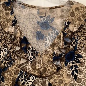Short sleeves, short length, ruffled neckline, soft fabric!