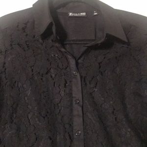 Black top button down with lace on sleeves and the front of it has lace never worn