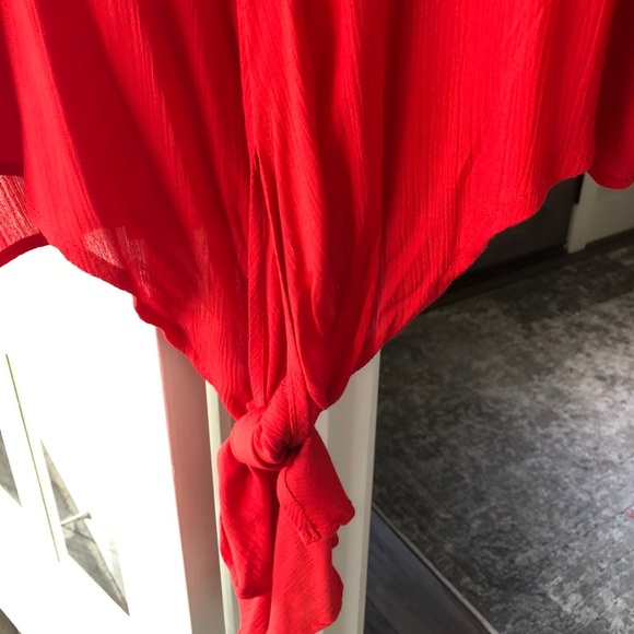 Top, ties on the bottom. Runs large, it’s a small but can fit a medium.