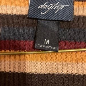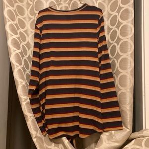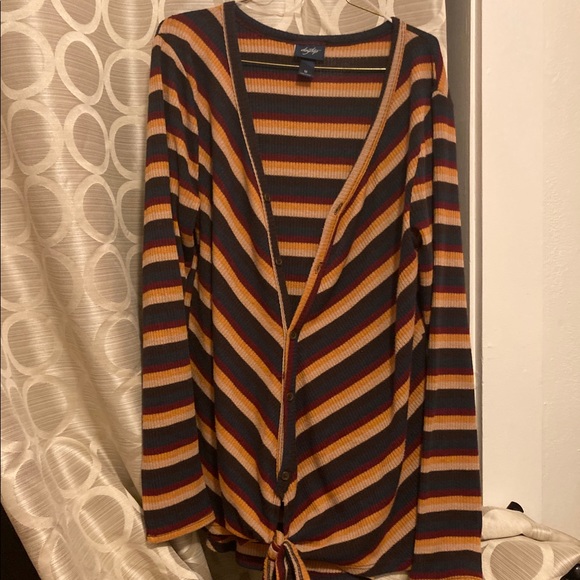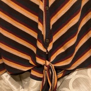 A multi colored button up top with a tie at the hem ... worn a couple of times no holes or stains is in excellent condition..fits big for a med