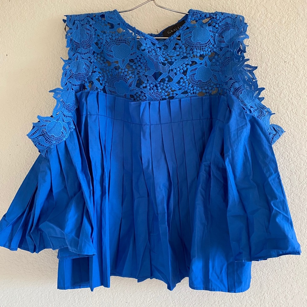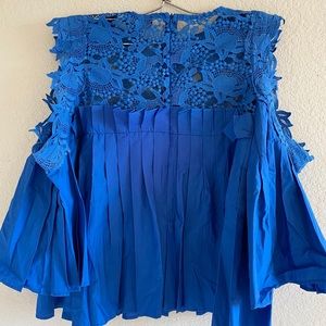 Blue ruffled open end long sleeve top! Cute designs on it!
