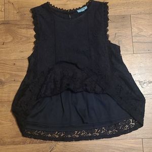 Black lace top with lining under. High Quality material in my opinion . Worn once