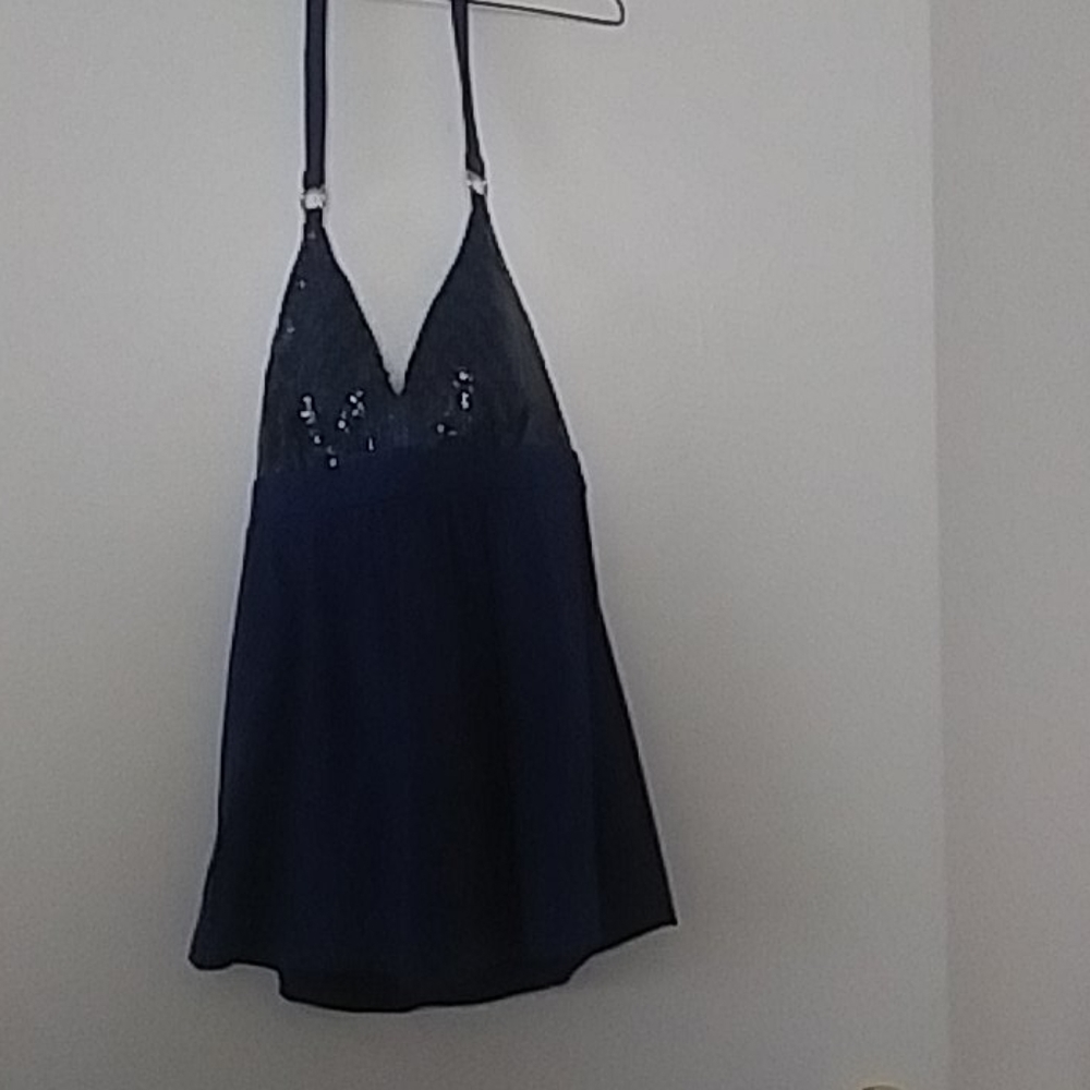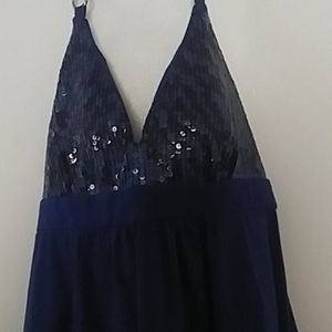 Blue sparkly tank top. Can be worn to the club or for dress. Tie's around neck.