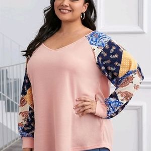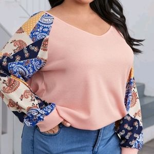 Waffle bodice w/Stretch non stretch sleeves
