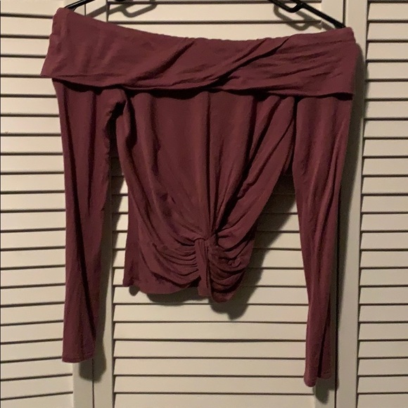 Off the shoulder deep purple top with knot in the front. Semi cropped