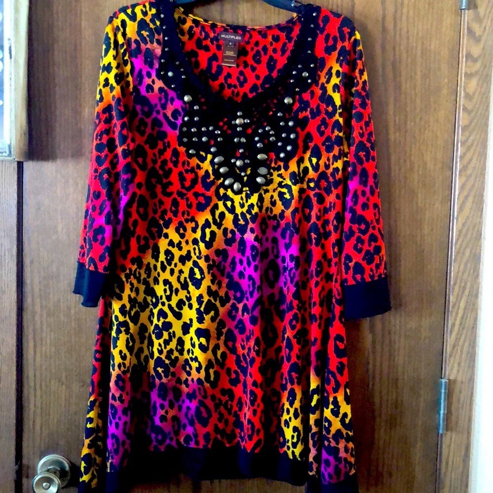 Bright colored top with some embellishments.