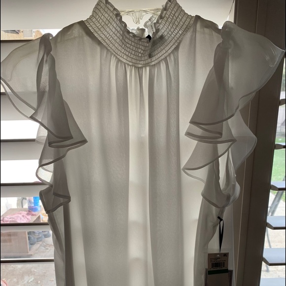 White,high neck frilly sleeves top