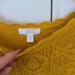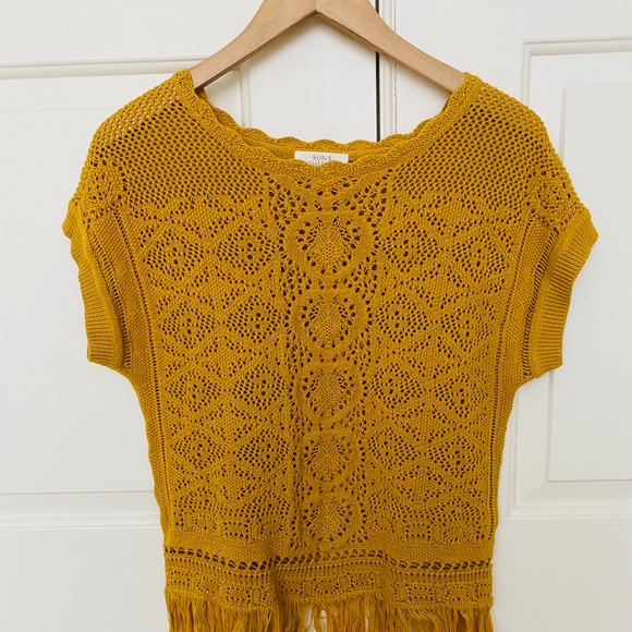 Crocheted knit top with fringed hem