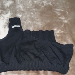 Black top side shoulder stones great with jeans. Wore once small size black 80%rayon 20% spandex