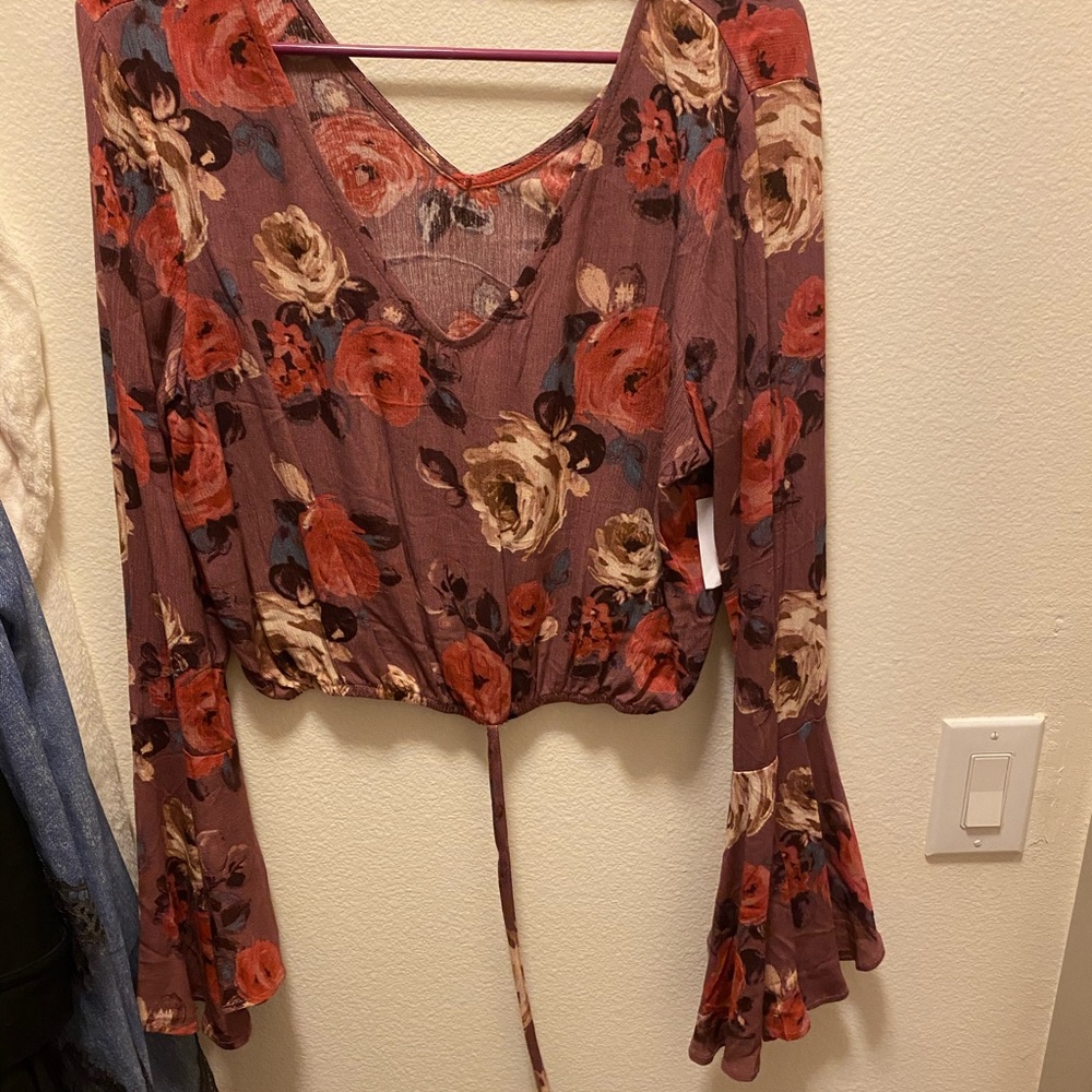 Cropped floral long sleeve top
