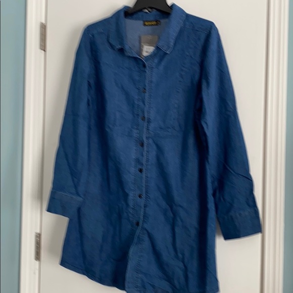 Denim button front long sleeve tunic/dress.