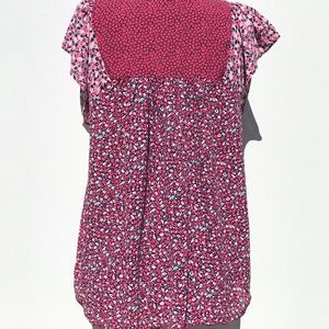 Gap loose fit top with flutter sleeves. Light pink, dark pink, navy blue and white floral print. Perfect for spring and summer. 100% Polyester. Excellent condition.