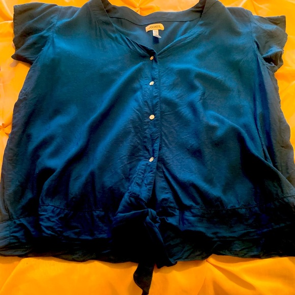 Silky fabric, boxy fit, tie at waist, size Large
