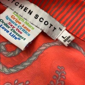 This is a super fun shirt between a neon orange, gray, yellow and white. Has cute gathered sleeves but they are not tight.