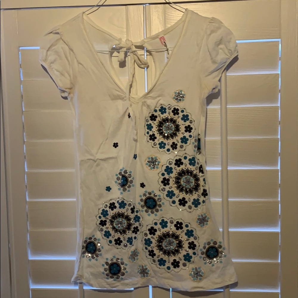 Short sleeve shirt with flowers on front