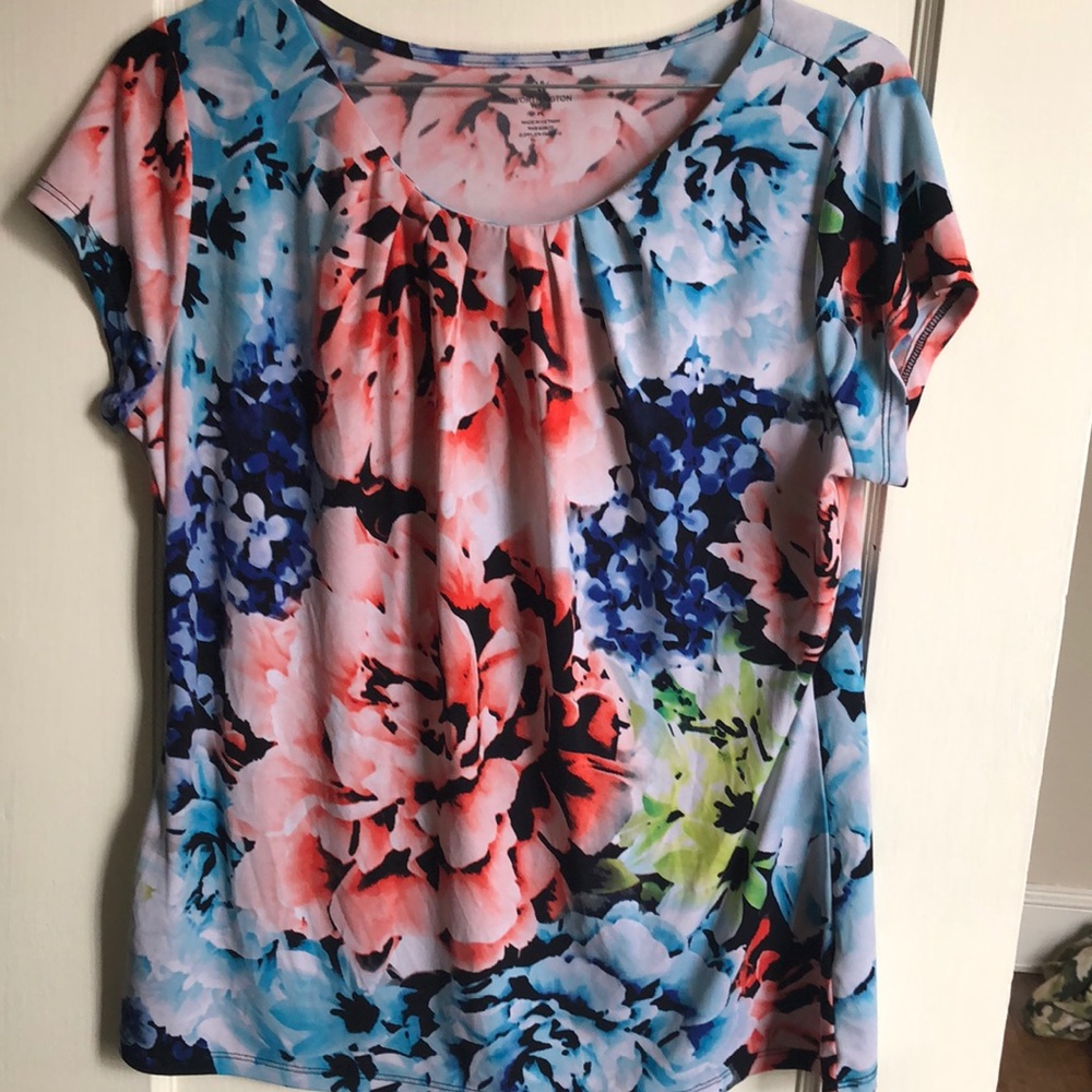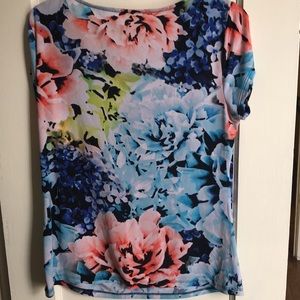 This Flower top is perfect for spring and it’s light weight with breathable material with a scoop neck. This goes well with any skirt/pant