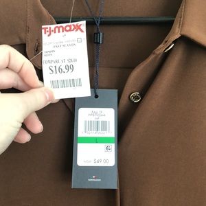 This top has never been worn and is brown it still has the tags and is a button up with a collar