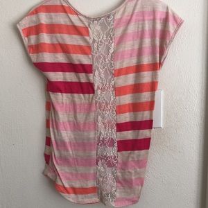This top it’s for you young girls out there it’s perfect for spring and summer it has a scoop neck and lace going down the back. It goes perfect with a Jean and sandals