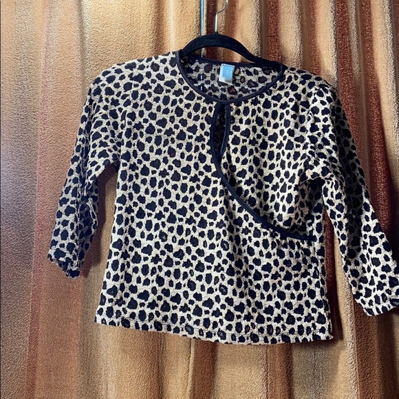 NEXT TO LOVE faux pullover wrap crop top with front open at neckline and 3/4 sleeve. Runs small for a large more like a medium