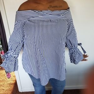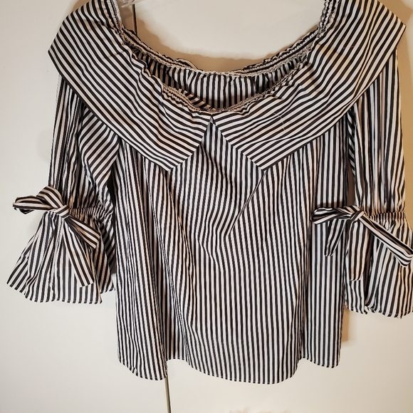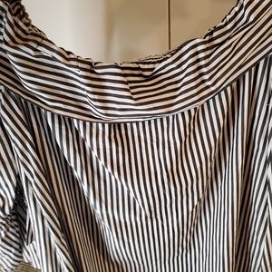 Black and white strip off the shoulder top