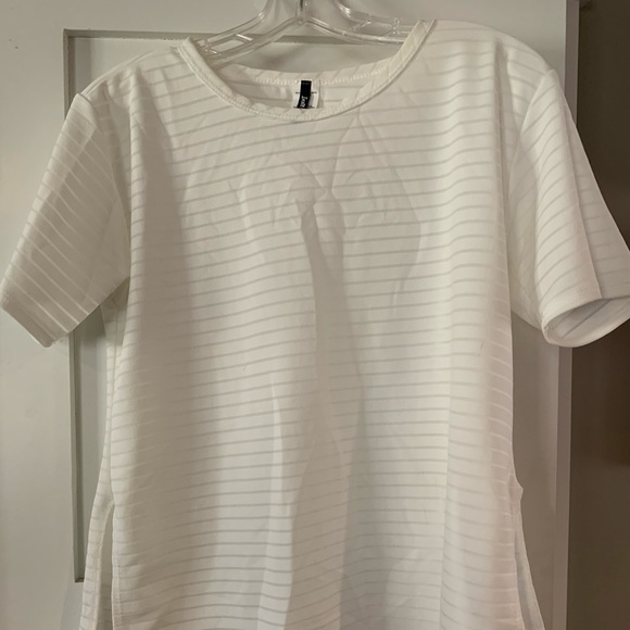 White on white striped top with side slits