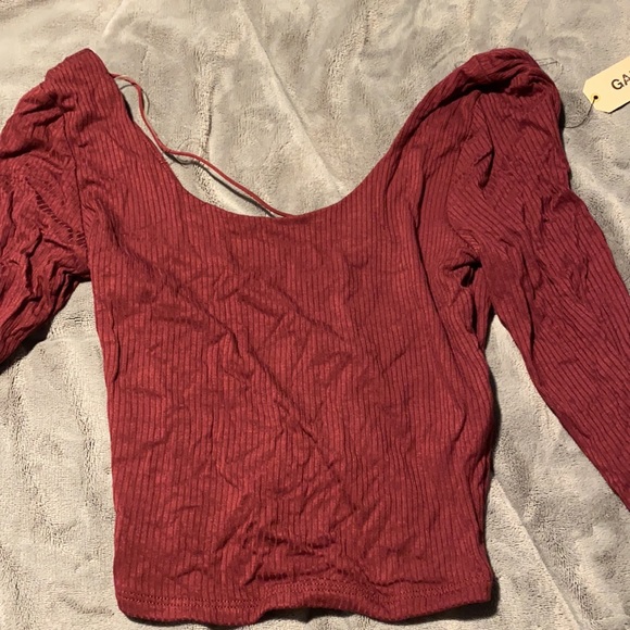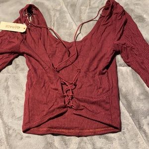Super cute open back burgundy top!! Crop top, thin enough for fall but also great for winter or spring!! Brand new, never worn!