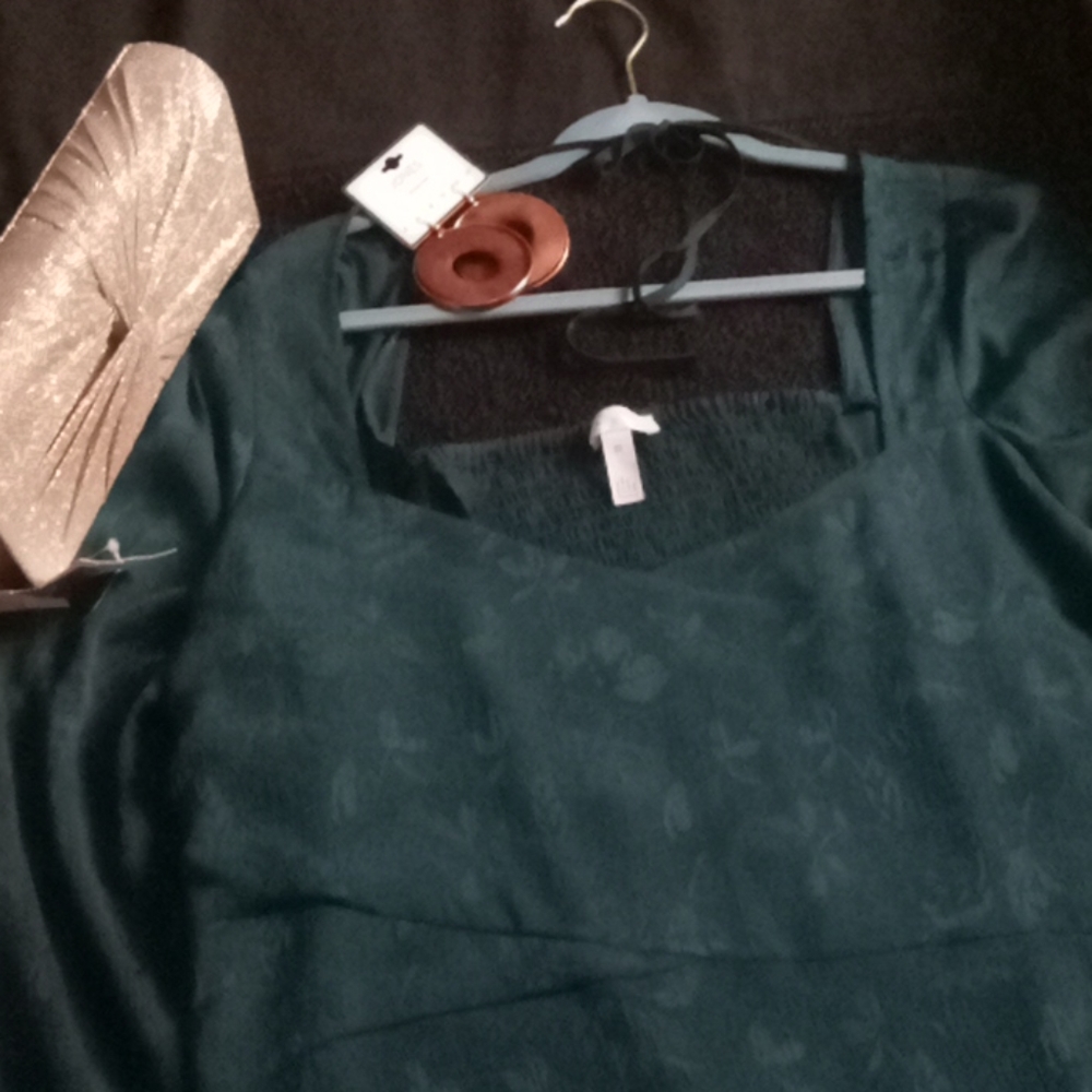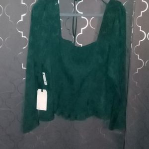 Beautiful emarald green top. Very lightweight and pretty with floral etching in the details. Brand new from Nordstrom Rack. Plunging neckline and this top can be tied up. Very eye catching.