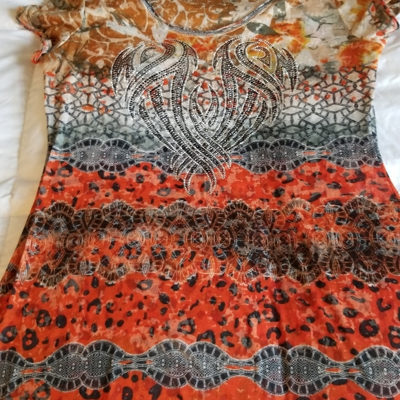Multi colored top with sparkle studded design. Worn once. In like new condition.