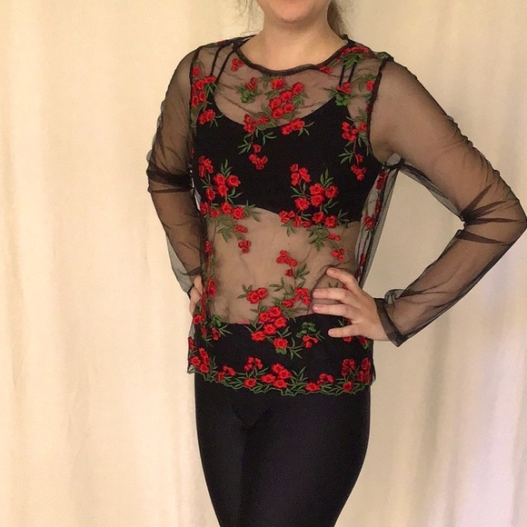 Black mesh top with roses