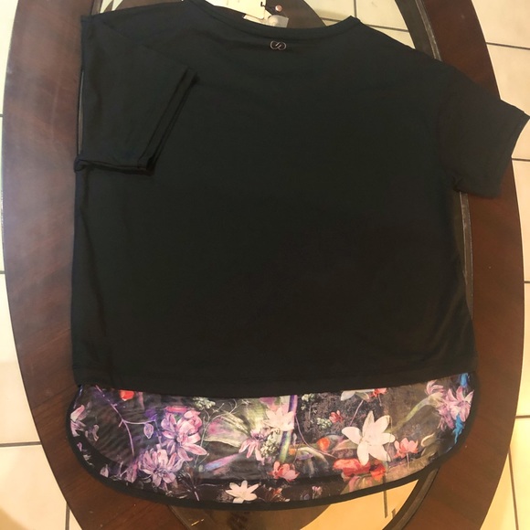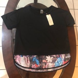 Short sleeve top black colorful bottom