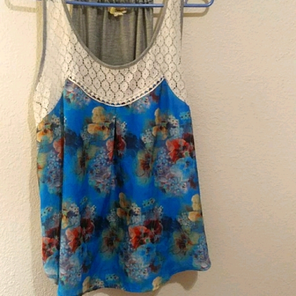 Tank top and Lace on top turquoise light flowers very beautiful on