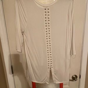 New with tag white v neck 3/4 length sleeve white cotton tee shirt top. Longer is back with lace up back. Super cute