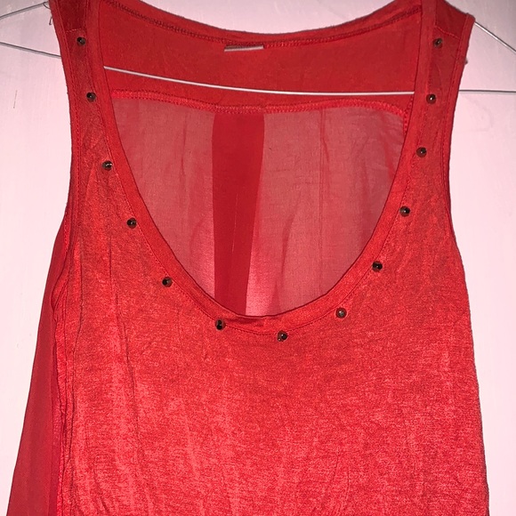 Loose fitting sleeveless top with rhynestones around neck line. Good condition.