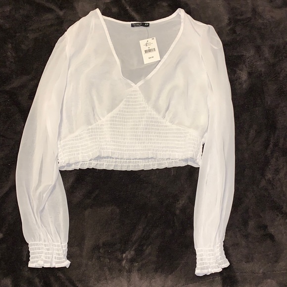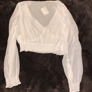 BRAND NEW NEVER WORN White long sleeve sheer top with ribbed material on bottom