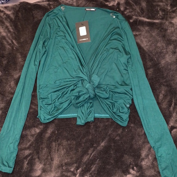 BRAND NEW NEVER WORN emerald green blouse with crisscross tie in the front (don’t get me twisted top)