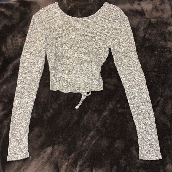 Worn once gray long sleeve with crisscross tie going down entire back
