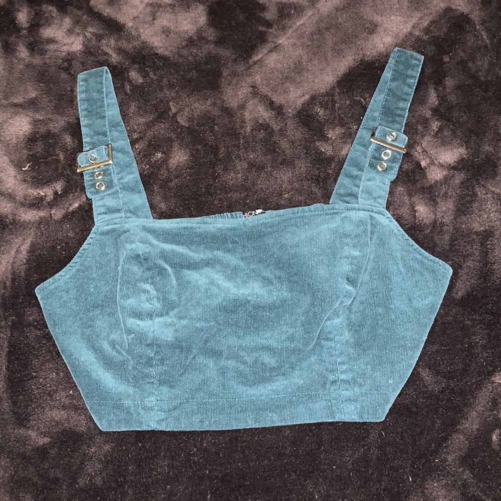 NEVER WORN Forest green corduroy top with belt style straps