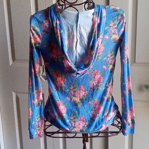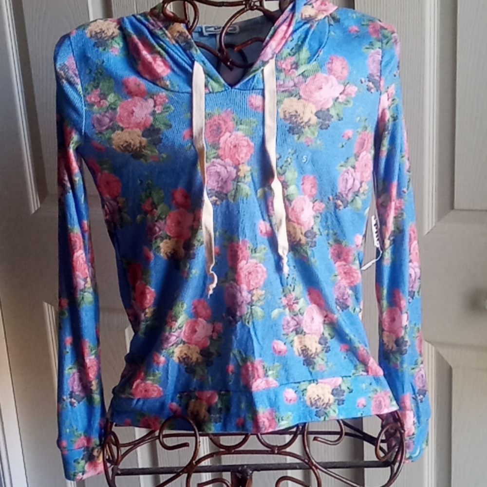 Periwinkle with camillas fliral. Lightweight ribbed long sleeved tee with hoodie. Made in the USA. NWT so cute!