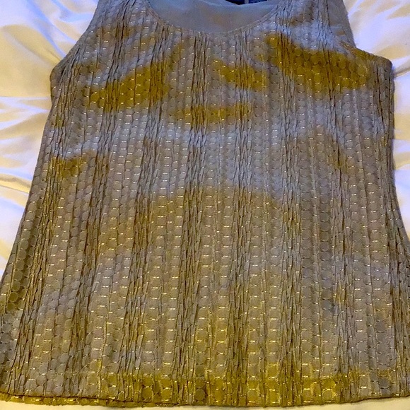 Polyester top with lining. Stretchy material gold threads interspersed throughout
