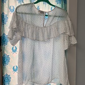 Floral ruffle blouse, excellent condition. Bought it on vacation in Sweden. Wore once.