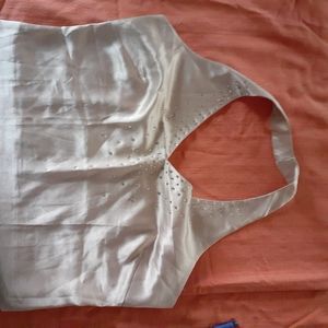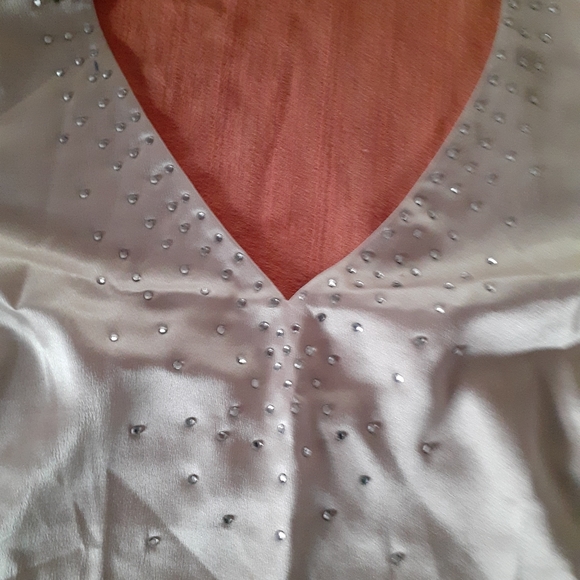 Halter top rhinestone neckline, side zipper opening Color: Ivory